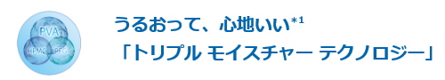 業界唯一のうるおい素材のポリビニルアルコールだからできるうるおいレンズです。保存液中にヒドロキシプロピルメチルセルロースルを配合して瞳とレンズの間のクッションの役割を果たしています。さらに保存液中にうるおい成分のポリエチレングリコールを加えて涙のヴェールを作ります。
