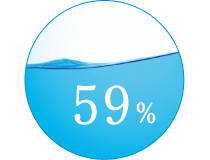 一番の特長はレンズに含まれる水分の量が59%と高含水なことです。つけた瞬間からみずみずしさを感じるレンズです。