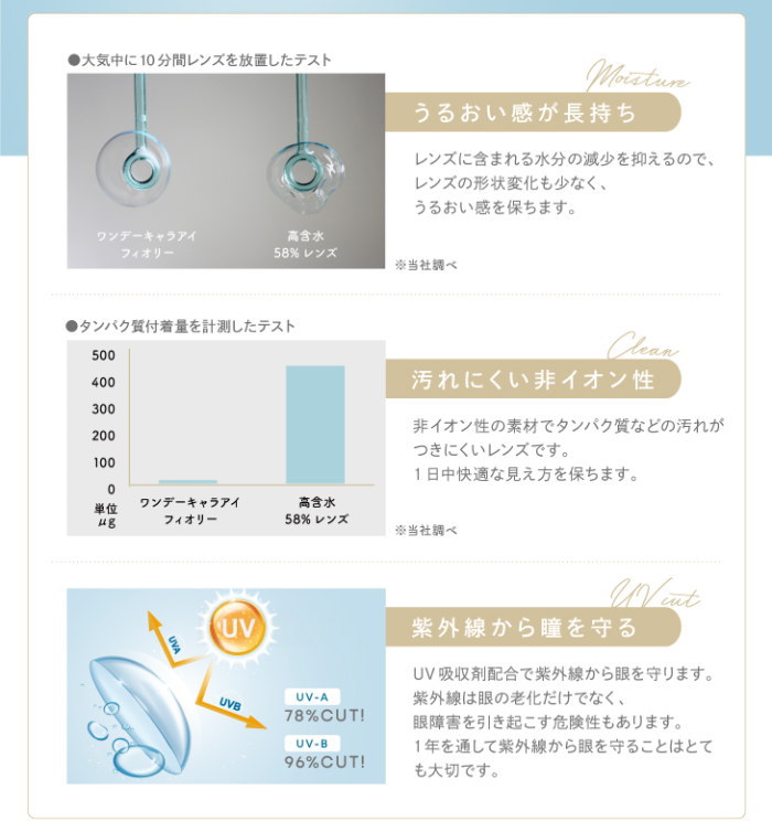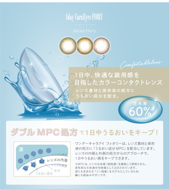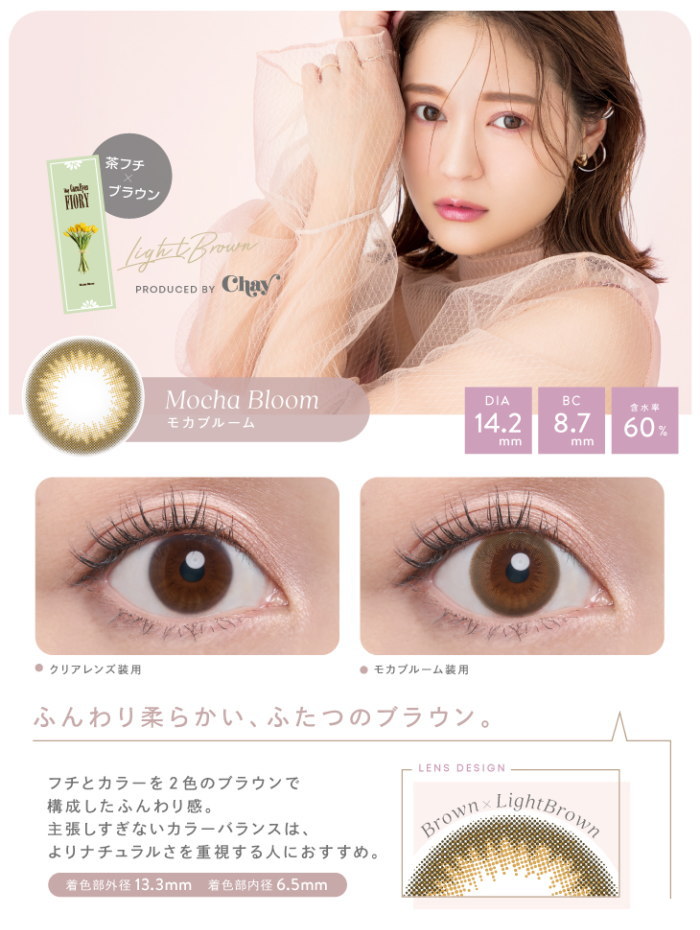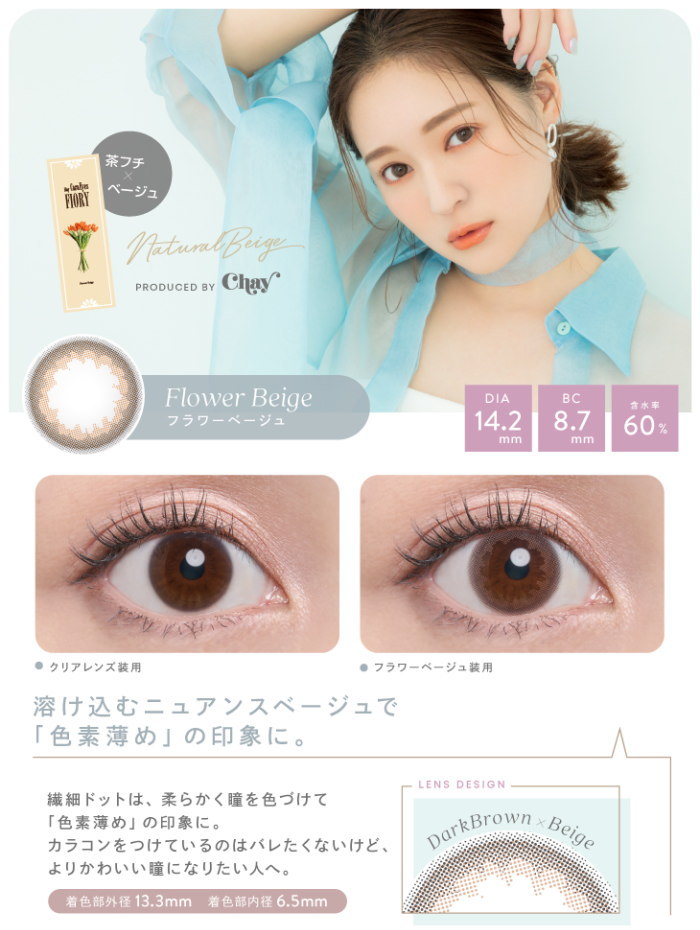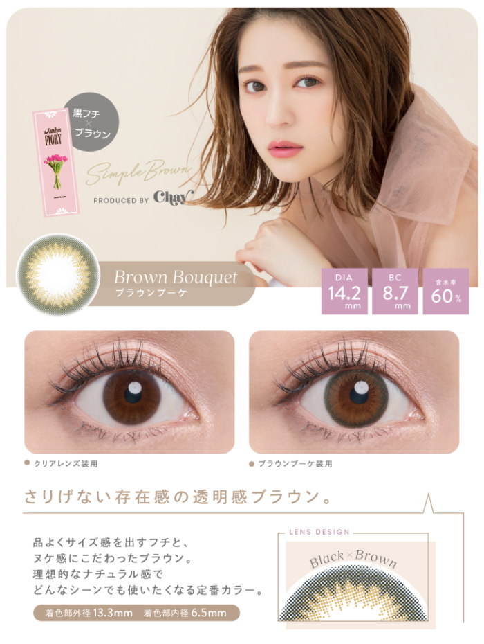 ワンデーキャラアイフィオリー10枚入含水率60%のワンデーキャラアイフィオリーが新発売です。通常のカラコンは含水率38%が多いけどワンデーキャラアイフィオリーは飛びぬけて高い含水率です。だからつけ心地が優しくて柔らかくて快適です。うるおい感も抜群です。1箱10枚入り 1,900円(税込)BCは8.7mmのみDIAは14.2mmのみ ご注文はカラーとPWRと箱数を選択してください。注 文右 左右左カラー カラー選択ブラウンブーケモカブルームフラワーベージュカラー選択ブラウンブーケモカブルームフラワーベージュPWRPWR(度数)PWR0.00度なしPWR-0.50PWR-0.75PWR-0.75PWR-1.00PWR-1.25PWR-1.50PWR-1.75PWR-2.00PWR-2.25PWR-2.50PWR-2.75PWR-3.00PWR-3.25PWR-3.50PWR-3.75PWR-4.00PWR-4.25PWR-4.50PWR-4.75PWR-5.00PWR-5.50PWR-6.00PWR-6.50PWR-7.00PWR-7.50PWR-8.00PWR-8.50PWR-9.00PWR-9.50PWR-10.00PWR(度数)PWR0.00度なしPWR-0.50PWR-0.75PWR-1.00PWR-1.25PWR-1.50PWR-1.75PWR-2.00PWR-2.25PWR-2.50PWR-2.75PWR-3.00PWR-3.25PWR-3.50PWR-3.75PWR-4.00PWR-4.25PWR-4.50PWR-4.75PWR-5.00PWR-5.50PWR-6.00PWR-6.50PWR-7.00PWR-7.50PWR-8.00PWR-8.50PWR-9.00PWR-9.50PWR-10.00数 量箱 数12345678箱 数12345678注 文 ワンデーキャラアイフィオリー製品情報1日使い捨てカラーコンタクトレンズ 商品名 ワンデーキャラアイ フィオリー含水率 60%製造販売元 ネオビジョン販売元 株式会社エスパル(S-PAL Co.,Ltd.)医療用具承認番号 30200BZX00014A011箱10枚入り(片目10日分) 定価オープン価格おすすめカラコンネオサイトワンデーリングUVワンデーアキュビューディファインモイストワンデーアキュビューディファインフレッシュフレッシュルックデイリーズ イルミネートエバーカラーワンデーナチュラル20枚入エバーカラーワンデーナチュラルモイストレーベルUVトパーズフェリアモベルミー 10枚入ベルミー 30枚入りアイコフレワンデーUVM 10枚入りアイコフレワンデーUVM 30枚入りエンジェルカラーワンデーバンビ10枚入りエンジェルカラーワンデー バンビ ヴィンテージ10枚入ワンデーリフレアエーアイラヴェール10枚入りフレッシュルックワンデーカラーワンデーキャラアイナチュラルプラス20枚入ネオサイトワンデーシエルUVLumie U ルミエユー