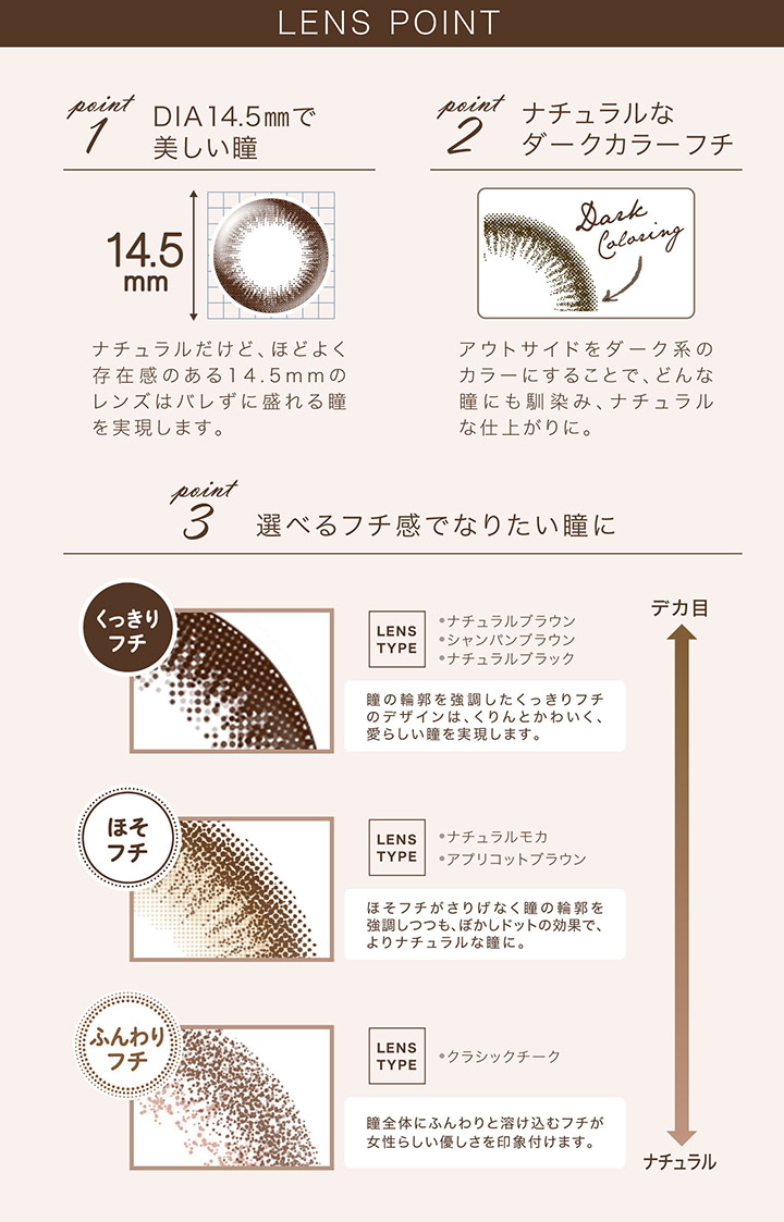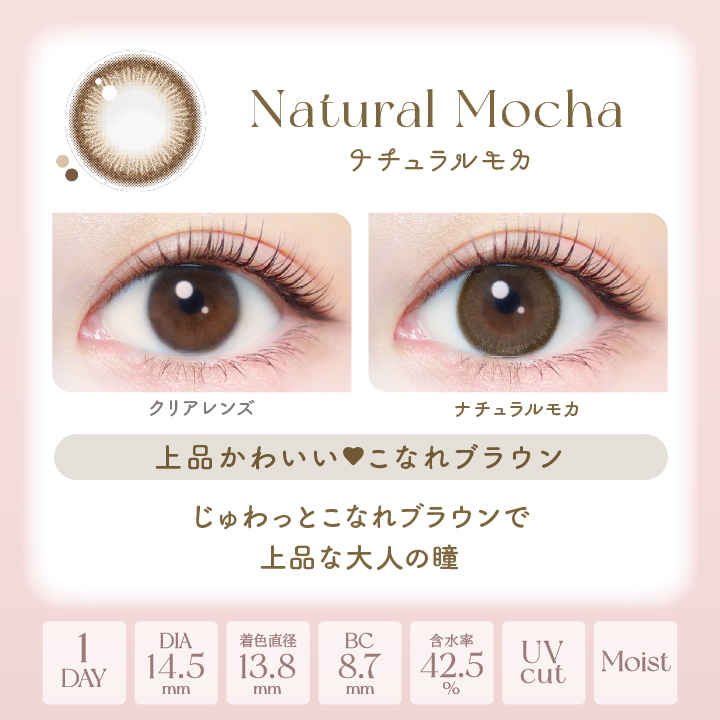 エバーカラーワンデーナチュラル20枚入新木優子さんがエバーカラーワンデーナチュラルのイメージモデルになってから人気がまた復活してきたような感じです。ちょっと大きめのDIA14.5mmでかわいさアップ。人気は「ひとめぼれの恋」、「ナチュラルモカ」と「アプリコットブラウン」相変わらず「ナチュラルブラウン」と「シャンパンブラウン」も売れています。4箱購入でクオカード500円分プレゼント中♪ 8箱なら1,000円分です。 1箱20枚入り 2,598円(税込) BCは8.7mmでDIAは14.5mmのみ カラーと度数と箱数をご選択ください。注 文右左右左色カラー選択くぎづけの心ひとめぼれの恋ナチュラルブラウンシャンパンブラウンナチュラルブラックアプリコットブラウンクラシックチークナチュラルモカクリアキャメルパールスノーグレーパールベージュスムースコーラルカラー選択くぎづけの心ひとめぼれの恋ナチュラルブラウンシャンパンブラウンナチュラルブラックアプリコットブラウンクラシックチークナチュラルモカクリアキャメルパールスノーグレーパールベージュスムースコーラルPWRPWR(度数)PWR0.00度なしPWR-0.50PWR-0.75PWR-1.00PWR-1.25PWR-1.50PWR-1.75PWR-2.00PWR-2.25PWR-2.50PWR-2.75PWR-3.00PWR-3.25PWR-3.50PWR-3.75PWR-4.00PWR-4.25PWR-4.50PWR-4.75PWR-5.00PWR-5.50PWR-6.00PWR-6.50PWR-7.00PWR-7.50PWR-8.00PWR-8.50PWR-9.00PWR-9.50PWR-10.00PWR(度数)PWR0.00度なしPWR-0.50PWR-0.75PWR-1.00PWR-1.25PWR-1.50PWR-1.75PWR-2.00PWR-2.25PWR-2.50PWR-2.75PWR-3.00PWR-3.25PWR-3.50PWR-3.75PWR-4.00PWR-4.25PWR-4.50PWR-4.75PWR-5.00PWR-5.50PWR-6.00PWR-6.50PWR-7.00PWR-7.50PWR-8.00PWR-8.50PWR-9.00PWR-9.50PWR-10.00数量箱 数12345678箱 数12345678注文 エバーカラーワンデーナチュラルの装用画像うるおい成分PMCポリマーの配合で夜までみずみずしい潤い感が続きます。さらにUVカット機能が付きましたから紫外線対策もバッチリです。エバーカラーワンデーナチュラル製品情報1日使い捨てカラーコンタクトレンズ商品名 エバーカラーワンデーナチュラルBC 8.7mm DIA14.5mm含水率 ナチュラルブラウン、シャンパンブラウン、ナチュラルブラックは38.6%含水率 ナチュラルモカ、アプリコットブラウン、クラシックチークは42.5%製造販売元 株式会社アイレ医療機器承認番号 ナチュラルブラウン、シャンパンブラウン、ナチュラルブラックは22300BZX00212A01医療機器承認番号ナチュラルモカ、アプリコットブラウン、クラシックチークは22600BZX00273A021箱20枚入り(片目20日分)定価オープン価格おすすめカラコンネオサイトワンデーリングUVワンデーアキュビューディファインモイストワンデーアキュビューディファインフレッシュフレッシュルックデイリーズ イルミネートエバーカラーワンデーナチュラル20枚入エバーカラーワンデーナチュラルモイストレーベルUVトパーズフェリアモベルミー 10枚入ベルミー 30枚入りアイコフレワンデーUVM 10枚入りアイコフレワンデーUVM 30枚入りエンジェルカラーワンデーバンビ10枚入りエンジェルカラーワンデー バンビ ヴィンテージ10枚入ワンデーリフレアエーアイラヴェール10枚入りフレッシュルックワンデーカラーワンデーキャラアイナチュラルプラス20枚入ネオサイトワンデーシエルUVLumie U ルミエユー