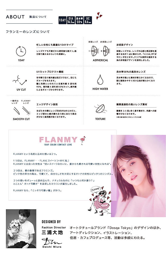 FLANMY(フランミー)30枚入り販売終了FLANMY(フランミー)30枚入りは販売終了しました。FLANMY30枚入製品情報1日使い捨てカラーコンタクトレンズ商品名 フランミー FLANMY含水率 58%着色直径 13.7mmカラー きなこロール・ハニートースト・サクラロール・カカオワッフル・チョコタルト・マッチャタルト・メープシフォン・ダークモカ・ドーナッツブラウン・オレンジブラウニー・キャロットケーキ・シェルサンドミルク・シェルサンドブラウン・シェルコーラルグレージュ紫外線カット製造販売元 Pegavision Japan株式会社販売元 株式会社Blanchel医療用具承認番号 22800BZI00037A091箱30枚入り(片目30日分)おすすめカラコンネオサイトワンデーリングUVワンデーアキュビューディファインモイストワンデーアキュビューディファインフレッシュフレッシュルックデイリーズ イルミネートエバーカラーワンデーナチュラル20枚入エバーカラーワンデーナチュラルモイストレーベルUVトパーズフェリアモベルミー 10枚入ベルミー 30枚入りアイコフレワンデーUVM 10枚入りアイコフレワンデーUVM 30枚入りエンジェルカラーワンデーバンビ10枚入りエンジェルカラーワンデー バンビ ヴィンテージ10枚入ワンデーリフレアエーアイラヴェール10枚入りフレッシュルックワンデーカラーワンデーキャラアイナチュラルプラス20枚入ネオサイトワンデーシエルUVLumie U ルミエユー