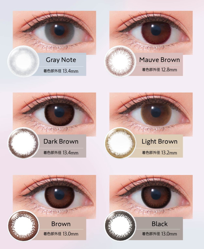 ネオサイトワンデーリングUVはカラーによってレンズの着色直径が違います。カラコンをしていることがバレない自然な大きさの12.8mmのムーヴブラウン、ブラウンとブラックは13.0mm、ライトブラウンは13.2mm、ダークブラウンは一番大きく13.4mmです。