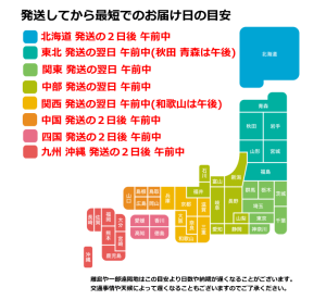 - 北海道・四国・中国地方・九州は2日後お届け