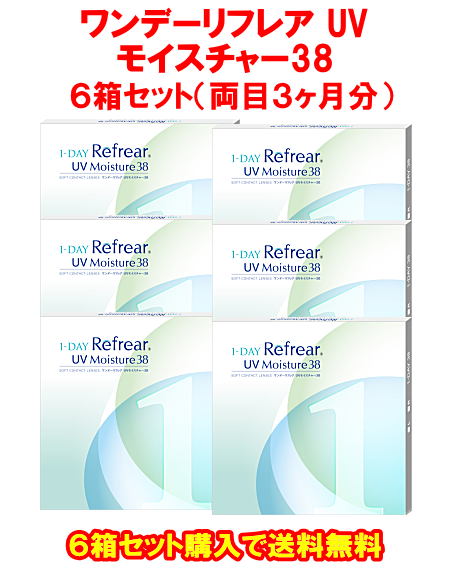 お買い得ワンデーリフレアUVモイスチャー38の6箱セットは送料無料です。含水率38%で汚れにくく、乾燥しにくく扱いやすいワンデーコンタクトです。