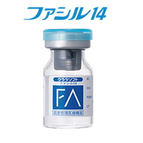 ファシル14はレンズ中心厚が0.07mm(-3.00Dの場合)と薄く、装用感に優れたレンズです。素材特性とデザインの調整でハンドリングも良好なバイオレットブルーの薄型ソフトコンタクトレンズです。