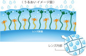 保存液にわかめや昆布などから抽出される天然保湿成分であるアルギン酸を配合しています。だからレンズ表面に水分を保つので乾燥しにくく夜までうるおい感が持続します。