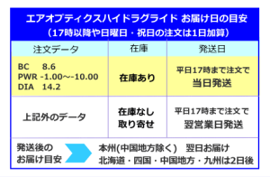 エアオプテクスハイドラグライドお届け日の目安